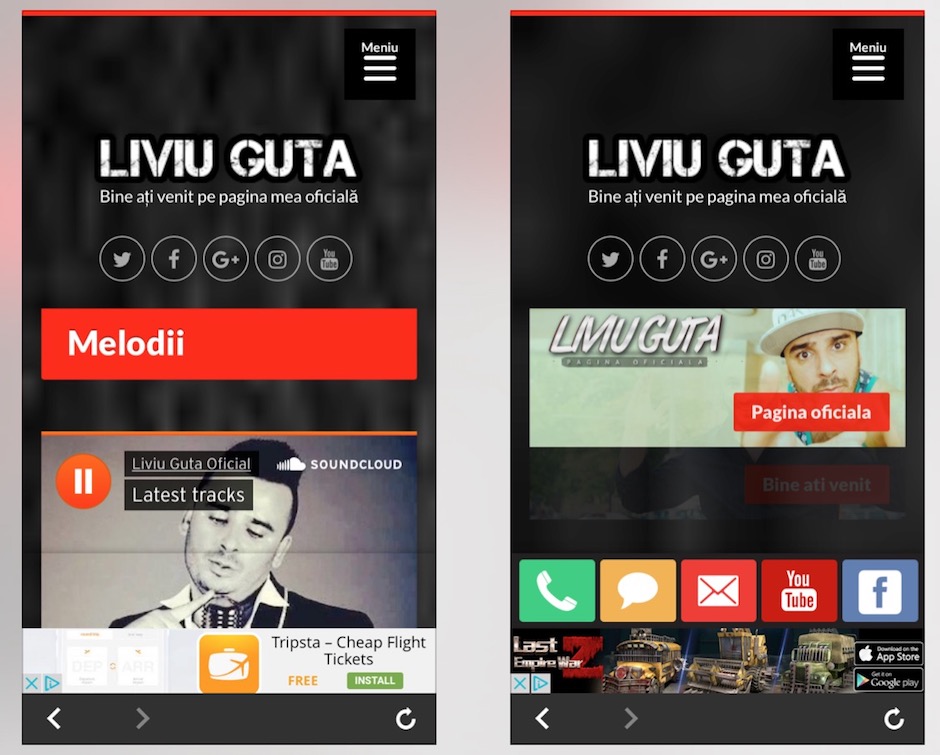 – Facebook – te duce către o pagină în care se încarcă postările de pe Facebook ale lui.
