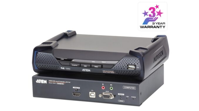 Desigur, VM3909H și VE816R formează o soluție versatilă, care oferă avantaje incontestabile și o ușurință în utilizare deosebită, dar într-o perioadă în care soluțiile IoT și mai ales IIoT iau amploare, poate fi de ajuns sau nu, în funcție de aplicație și de cerințele și nevoile utilizatorului. Din acest motiv, ATEN a creat o serie de echipamente KVM over IP. În esență, un set de astfel de echipamente (Transmiter și Receiver) îi permite operatorului să controleze un sistem de calcul aflat la distanță, pentru a accesa diferite date, pe care le poate reda pe un Video Wall, sau pentru a-i da diferite comenzi acestuia, precum informațiile pe care dorește, de exemplu, să le comunice public.