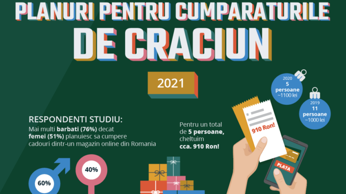 Potrivit studiului realizat de Compari.ro1 pe un eșantion de 1.627 de persoane, utilizatorii de internet din România vor cheltui în medie 910 lei pentru cadourile de Crăciun din acest an, ceea ce reprezintă o scădere de aproximativ 17% față de 2020. Cheltuielile pentru cadourile de Crăciun pot ajunge chiar până la un sfert din venitul mediu lunar net pentru o gospodărie.