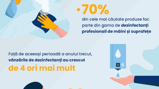 În ceea ce privește categoriile de produse care s-au vândut cel mai bine, se regăsesc dezinfectanții cu o pondere de 70%, în timp ce alte produse reprezintă 30%. De asemenea, 80% din cei care au cumpărat produsele au fost clienți noi. Nu în ultimul rând, clienții au achitat contravaloarea produselor cumpărate preponderent cu cardul bancar.