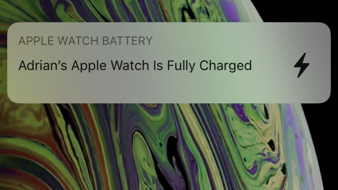 Una dintre notificările pe care o aștept cu mare interes și care mi se pare deosebit de utilă este cea din poză: “… Apple Watch is Fully Charged”. De ce? Pentru că mă anunță de la distanță că ceasul meu este încărcat și că pot să merg să-l pun din nou la mână. Cum ar fi fost fără această simplă notificare?