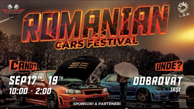 Iașul devine pentru trei zile, în perioada 17-19 septembrie, gazda primei ediții “Romanian Cars Festival”, festival dedicat pasionaților de mașini. “Liga Studenților de la Facultatea de Mecanică Iași și comunitatea Cars&Coffee Iași, în colaborare cu Primăria Dobrovăț organizează în Iași-Dobrovăț (platoul Afterhills) evenimentul ce va conține o expoziție de mașini, probe auto și show-uri cu muzică live.