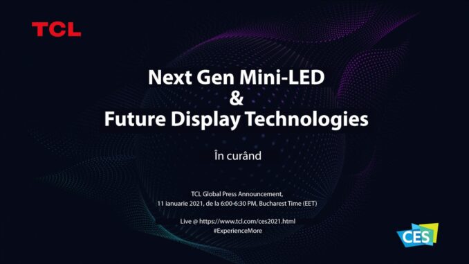 TCL va fi prezent la o multitudine de sesiuni la CES 2021, unde va expune și detalia tehnologii de top pentru ecrane, precum și o gamă largă de electrocasnice pentru uz zilnic, gândite în așa fel încât utilizatorii să #ExperimentezeMaiMult (#ExperienceMore). De notat că pe 11 ianuarie, în premieră, în cadrul secțiunii Global Press Announcement, TCL va prezenta mult așteptatele sale inovații Mini-LED și tehnologiile Future Display, care în mod clar vor capta atenția și interesul mass-media, precum și al consumatorilor industriei de electronice.