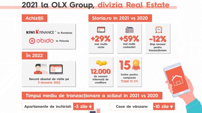 Storia.ro, platforma de imobiliare cu cele mai multe anunțuri din piață, și OLX Group au înregistrat în anul 2021 rezultate remarcabile atât la nivel regional, cât și la nivel local. De asemenea, platforma Storia.ro a fost vizitată de 13 milioane de oameni anul trecut, având o creștere de 29% comparativ cu anul 2020, potrivit datelor de trafic.