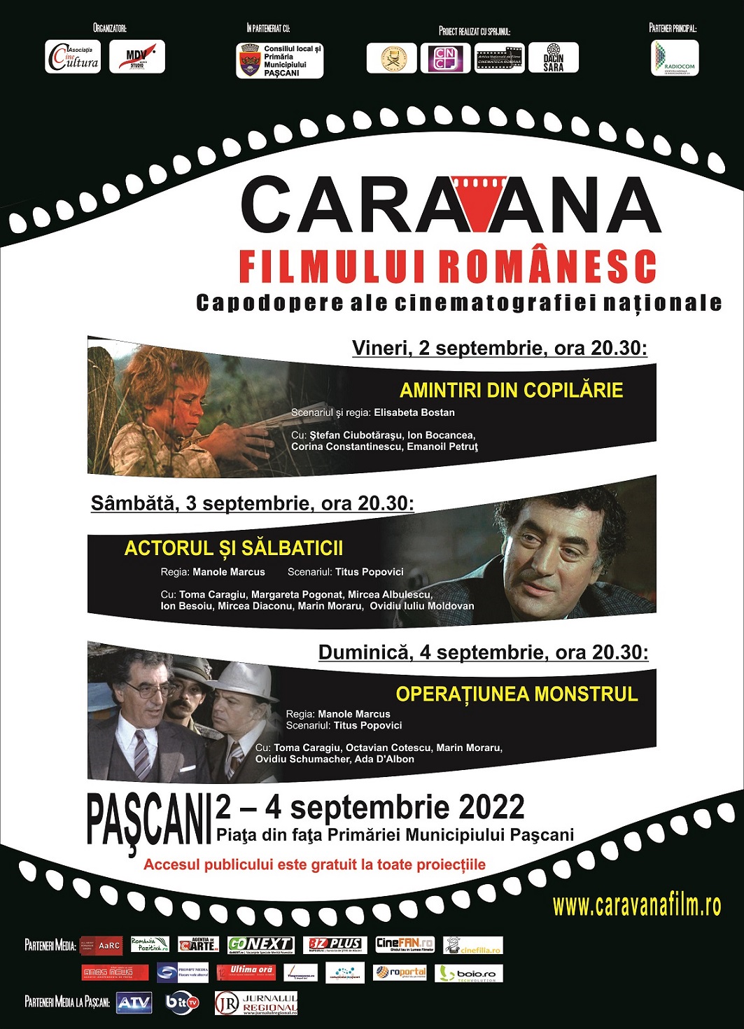 „Caravana filmului românesc – Capodopere ale cinematografiei naționale” ajunge, pentru al cincilea an consecutiv, la Pașcani, în perioada 2 – 4 septembrie. Proiecțiile vor avea loc în Piața din fața Primăriei Municipiului Pașcani, de la ora 20.30.