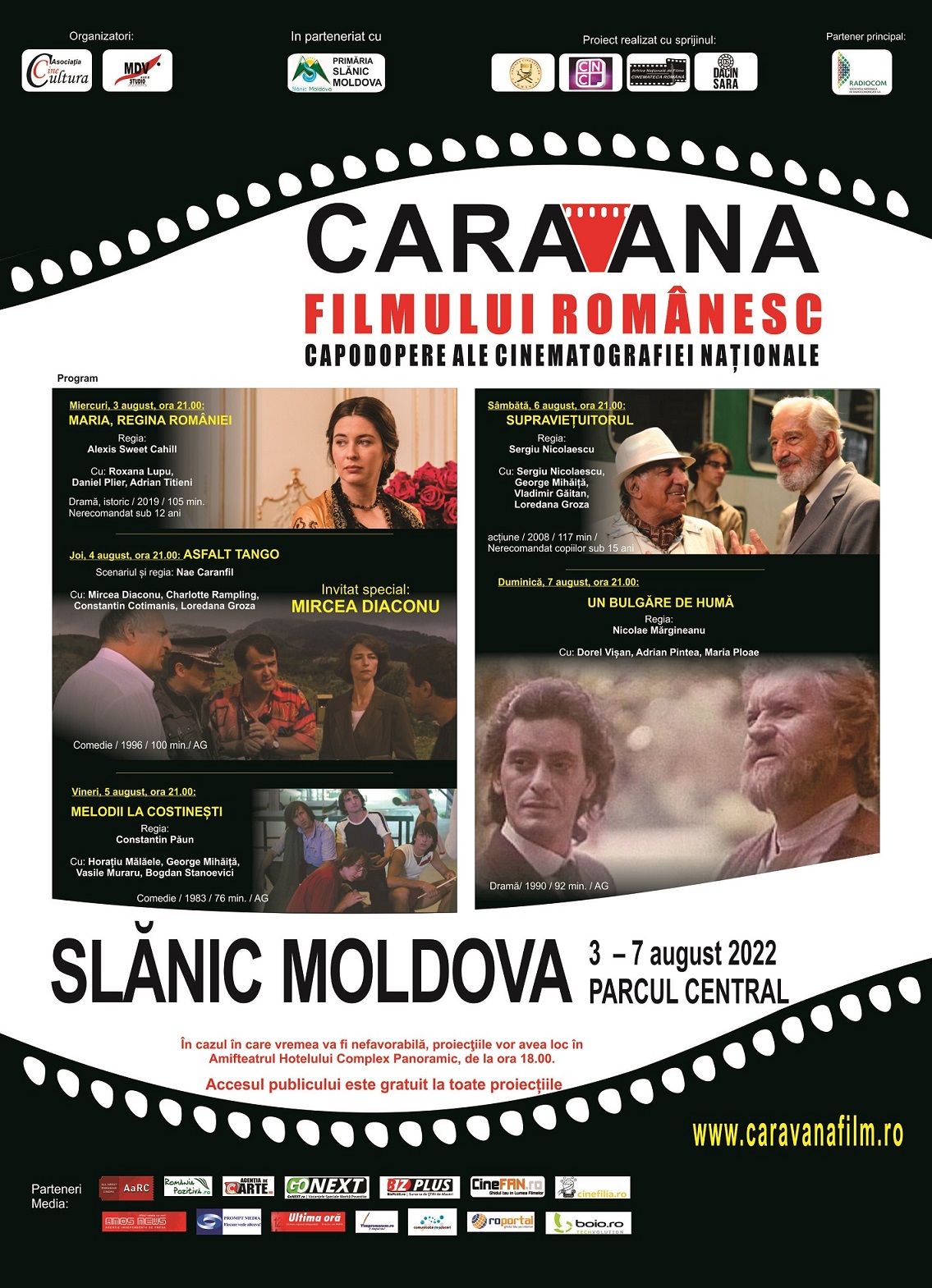 „Caravana filmului românesc – Capodopere ale cinematografiei naționale” ajunge pentru prima dată în frumoasa stațiune Slănic Moldova unde, timp de cinci seri, în perioada 3 – 7 august iubitorii de film sunt invitați să vizioneze o serie de filme românești, de la comedie la film istoric.