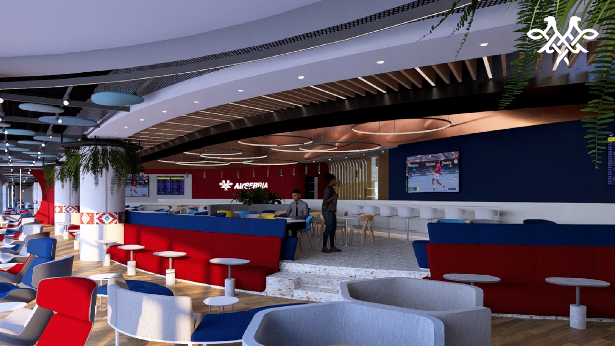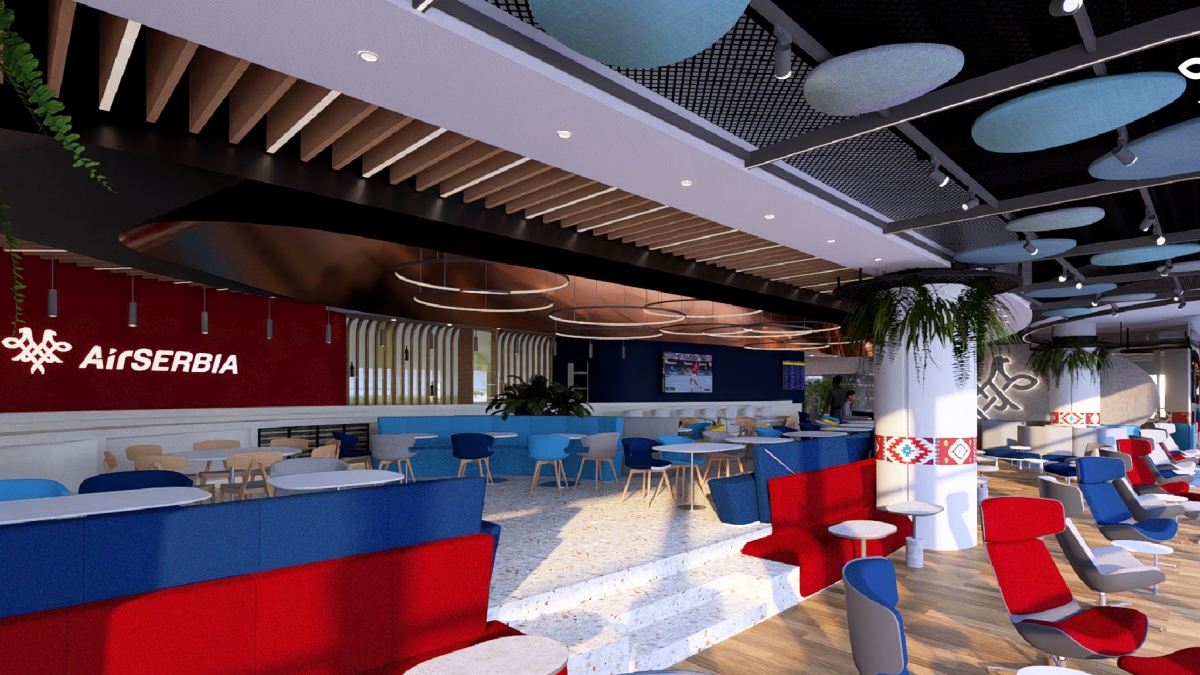 Noul salon premium al Air Serbia va avea o bază dreptunghiulară cu un perete complet din sticlă pe toată lungimea sa. Acest lucru va permite oaspeților lounge-ului să se relaxeze sau să lucreze cu o vedere atractivă asupra pistei Aeroportului Nikola Tesla din Belgrad, observând decolările și aterizările înainte de zborul lor. Spațiul va fi dominat de forme fluide inspirate de traiectoriile de zbor, precum și de culorile și simbolurile recunoscute ale Air Serbia. Salonul va fi împărțit în două zone, de serviciu și de relaxare, în timp ce o zonă separată va include o sală de conferințe pentru întâlniri de afaceri, situată într-o zonă VIP specială a Premium Lounge-ului.