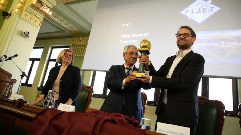 Federația Internațională a Jurnaliștilor și Scriitorilor de Turism, FIJET, a oferit, azi, trofeul „Mărul de Aur” orașului Timișoara, Capitală Europeană a Culturii 2023. La evenimentul găzduit de sediul Rectoratului Universității „Politehnica” – Palatul Lloyd au fost prezenți membrii Comitetului Executiv al FIJET, membri ai Clubului Presei de Turism – FIJET România, reprezentanți ai industriei turistice și ai mass-media locale, autorități locale precum și Dominic Fritz, primarul municipiului Timișoara.