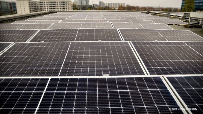 Unul dintre cei mai importanți dezvoltatori imobiliari din România, Genesis Property, prezintă un nou pionierat pentru piața de real estate, prin implementarea celui mai extins proiect de energie regenerabilă dintr-un parc de birouri din România. Proiectul a constat în instalarea a mai mult de 1.000 de panouri fotovoltaice pe o suprafață de peste 4.000 mp, în regim de prosumator, pe acoperișurile clădirilor de birouri din cadrul YUNITY Park (Novo Park) din nordul Bucureștiului, în urma unei investiții de 1 milion de euro.