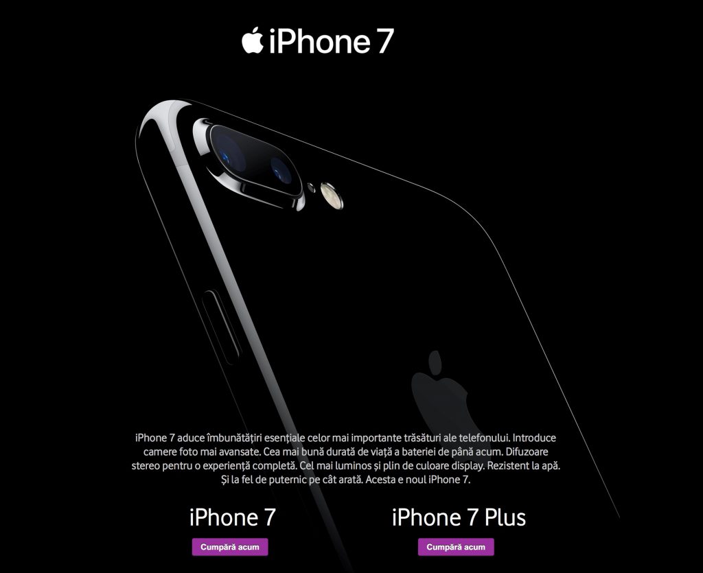Perioada de pre-comandă a trecut. De acum poți să cumperi un iPhone 7 sau iPhone 7 Plus din România. Vodafone a pregătit o lansare specială pentru noile device-uri Apple. Noaptea trecută, la ora 0.00, magazinul companiei de pe strada Lipscani, 27, din București a fost scena evenimentului “Black is the New Black”. Amatorii de produse Apple au fost invitați să poarte ținute chic black, iar cei mai norocoși au fost premiați de Vodafone.