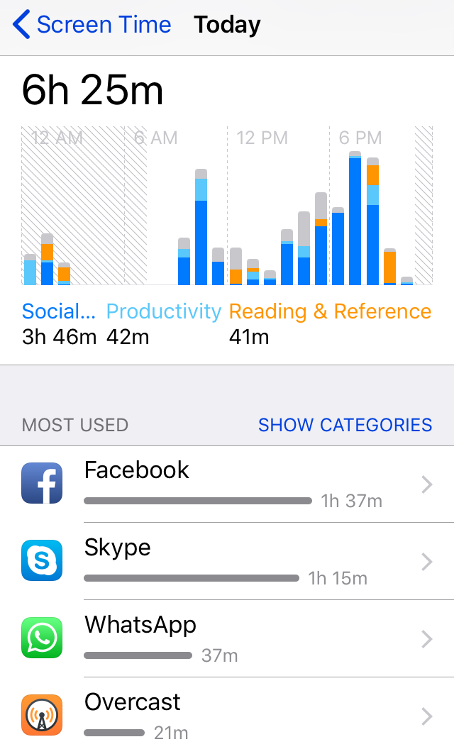 Este însă o funcție care mă sperie și mă face să fiu mai conștient de ceea ce fac, în acelați timp: Screen Time – aplicația care îți arată cât timp petreci pe telefon și, mai ales, cum anume.
