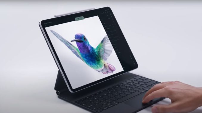 Bună ideea folosită: iPad-ul parcă plutește pe noua tastatură care se conectează magnetic. Execuție excelentă și culori superbe!