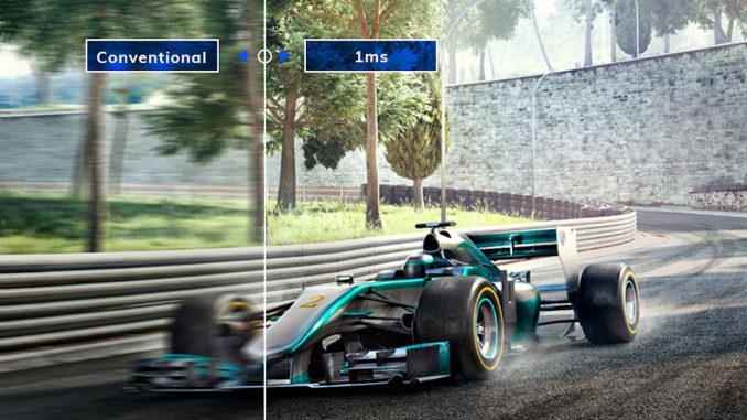 Timpul de răspuns de 1ms reduce semnificativ fenomenul de încețoșare a imaginilor în mișcare, ceea ce îmbunătățește considerabil claritatea și efectele de umbrire sau de degradare a culorilor.