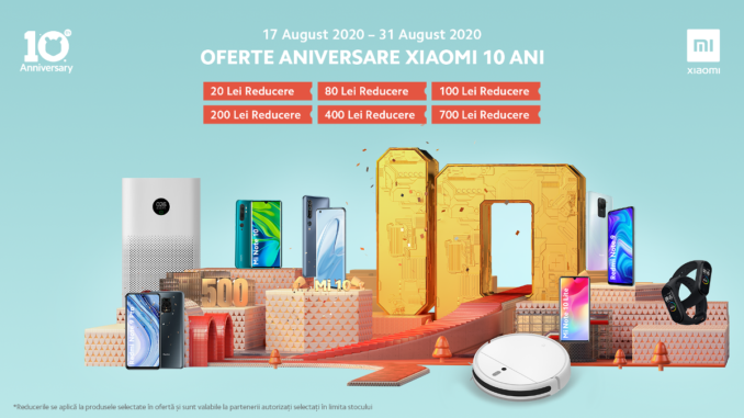 Xiaomi, lider global în tehnologie, marchează luna aceasta 10 ani de la fondare, cu nenumărate discount-uri care vor fi disponibile în perioada 17-31 august pentru Fanii Mi și pentru utilizatori.