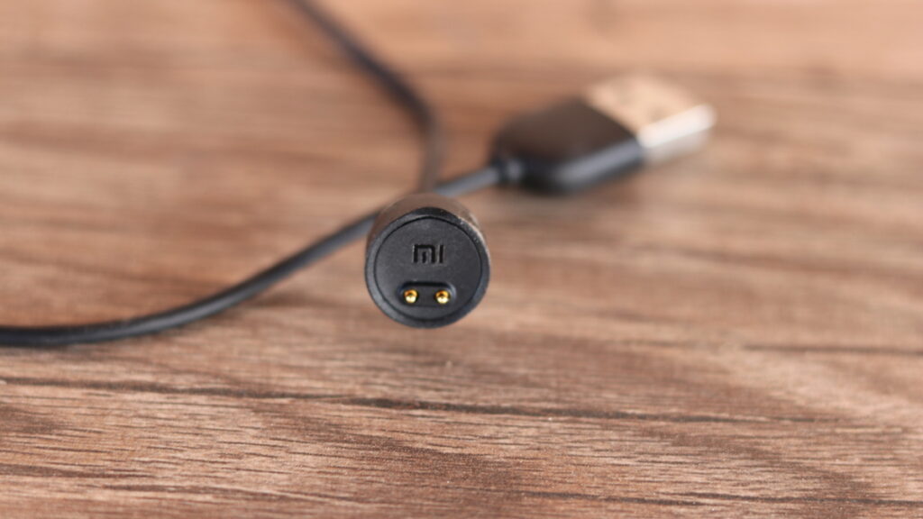 Xiaomi a reușit să aducă MagSafe-ul de la Apple la ceasuri. Încărcătorul acestui device este unul magnetic. Nu e nevoie să mai scoți ceasul din curea – și, în acest fel, nici nu mai riști să o lărgești sau să o rupi repede – ci îl încarci în orice moment cu un conector care se lipește magnetic de spatele lui și îl încarcă prin doi pini. Sunt curios dacă, în timp, acei pini au de suferit de la transpirație sau apă.